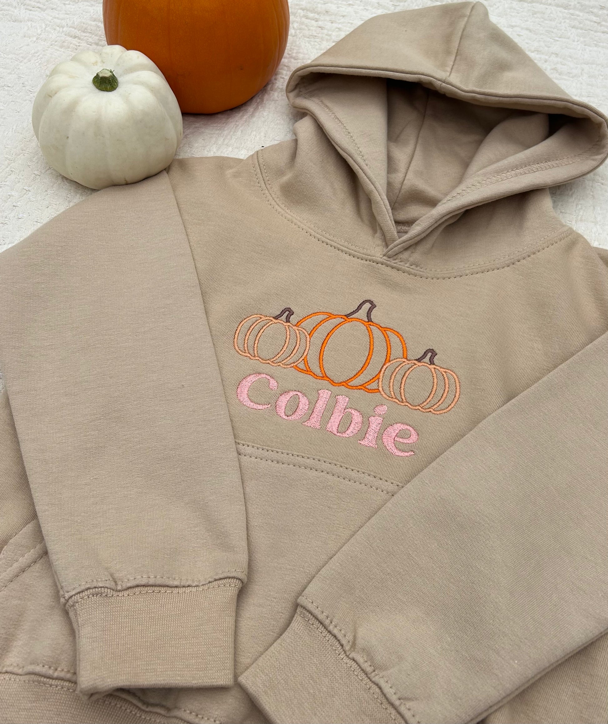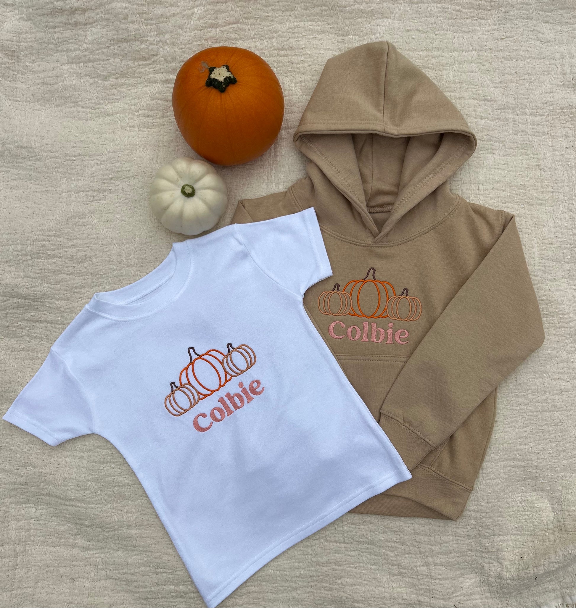 Celebrate the cosiest season with our Pumpkin Trio embroidered design, personalised with your child’s name as standard. This keepsake piece is perfect for pumpkin patch trips, Halloween parties, and those golden seasonal photos you’ll treasure year after year.